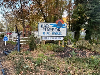 We made it to Bar Harbor RV Resort and Marina. The campground has a lot of permanent residents and weekend visitors. The facility was small and was nestled on the shore of the Bush River and was across from Aberdeen Proving Ground. If you're lucky enough, your site backed into shore points, which offered gorgeous views of sunrise. Ours wasn't. We were parked in a really tight spot underneath and acorn rain forest. The constant deluge of the acorns, day and night were worthy of forming permanent blink tics.