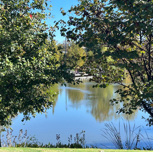 The Gathering place is rated one of the very best public parks in the nation and for good reason. The beach chairs rest among treed backgrounds and sandy lake fronts. A place to relax watch wildlife or take a nap. The steel birds are slides for kids. The playground is acres of fun. And while you're asking, Julie beat up two kids, went in and slid down!