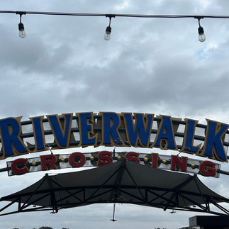 The Riverwalk, a pretty neat place. Not much open while there. Julie talks me into riding flipper at the Aquarium. Captain Skippy telling us which way to the bar.