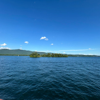 But we didn't come to Lake George to spend all our time staying in a campground. We wanted to take in all of the natural beauty of the area. Everything in the area is centered on and around the lake. A trolley ran from the campground down to the village of Lake George. All the time we were in the region the weather was hot and humid. We decided to take a cruise on the lake. There are a lot of ships that offer different types of cruises, whether traveling the lake from one end to the other, cruises past the fabulous mansions lining the western shore, cruises that speak to the history of the area and even more. Of the myriad choices, we chose a cocktail cruise.