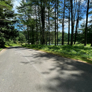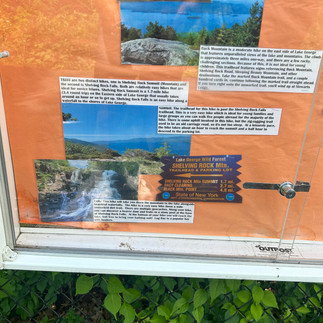 So what did this have to do with hiking at Lake George? Julie spotted a place called Shelving Rock mountain trail where the falls pictured above can be found. Okay, it's already a humid 90 degrees and we drive on narrow, steep unpaved roads for 12 miles. Coming at us are huge lumber trucks barreling at high speeds, causing us to move dangerously close to the side of the road where I thought would force us into a ravine. But we make it and park the dually, walk up to the trail head and look over the map. There is no trail that leads to the falls. We'd read that it is a short, easy walk to the falls. Not really. We didn't have on the right footwear and so our day hiking to the falls ended without a call to Andrew.
